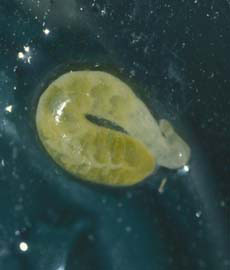 Today's parasite may be an example of a parasite turned predator over the course of evolution. Cystobranchus virginicus is a fish leech (Family Piscicoloidae), similar to a leech we saw earlier this year. Like other fish leeches, C. virginicus supposedly uses its long proboscis to feed on fish blood. However, this leech also has been documented to feed on fish eggs, an infrequently documented behavior (egg-feeding had only been observed in 5 or 6 other leech species). During a study examining fish mating systems, C. virginicus appeared in the redds (gravel nests where fish eggs are deposited) of at least four different fish species. Although not actually observed feeding on the fish eggs, these leeches were distended in shape and had the same translucent yellow color as the fish eggs when collected. Interestingly, no one has ever observed C. virginicus feeding on fish blood. It’s possible that the entire diet of this leech now consists solely of eggs, a potential concern if egg feeding results in high mortality and decreased fitness of the host fish species.Contributed by Jessica Light.