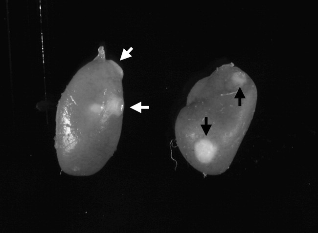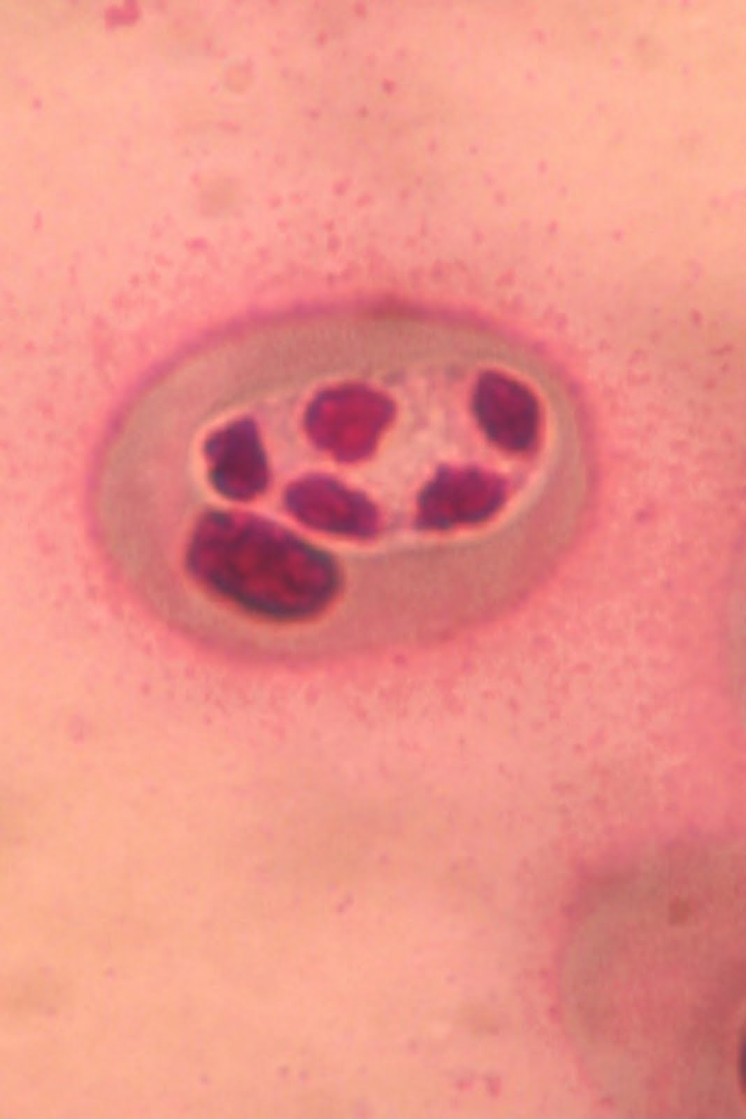 Dragonflies and damselfies are attractive creatures, yet they too have parasites! These include gregarines, which live in the intestine. Gregarines are single celled parasites known as apicomplexans, a group that also includes Plasmodium species, which cause malaria. Gregarines parasitize all sorts of invertebrates, such as oysters, beetles, earthworms, harvestmen, and a variety of insects. There are very likely tens of thousands, if not more, undiscovered species of gregarines in nature. For example, we recently found a new species of gregarine in the Eastern fork-tail damselfly in upstate New York, shown in this image. The star-like structure, the epimerite, is used to attach to the intestinal wall. We are now working on describing this new species. Post and photo contributed by Crystal Wiles and Florian Reyda.
